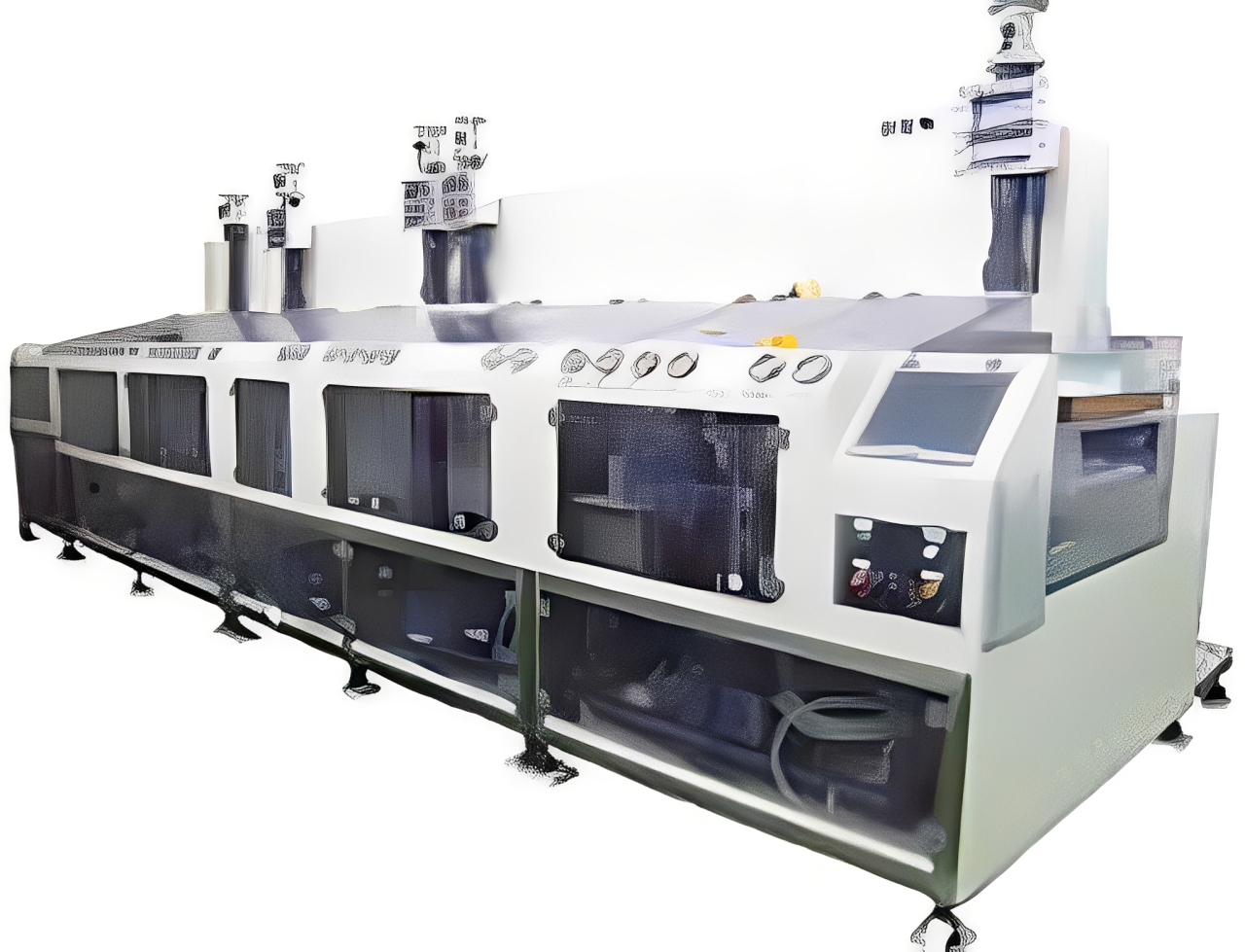 卓越显影的设备,此方案叙丰透过显影液(TMAH、KOH、K2CO3)有效的去除光阻,来达成定义之图形,并以不同的制程来选用最佳化的喷嘴或液刀,并以特殊的喷洒设计来达到最佳的均匀性,在此消泡纯水清洗,抽风流体力学及药液防止外泄设计也是一个很重要的一个环节,能确保产出基板品质,使基板状态能符合下个制程的需求条件。