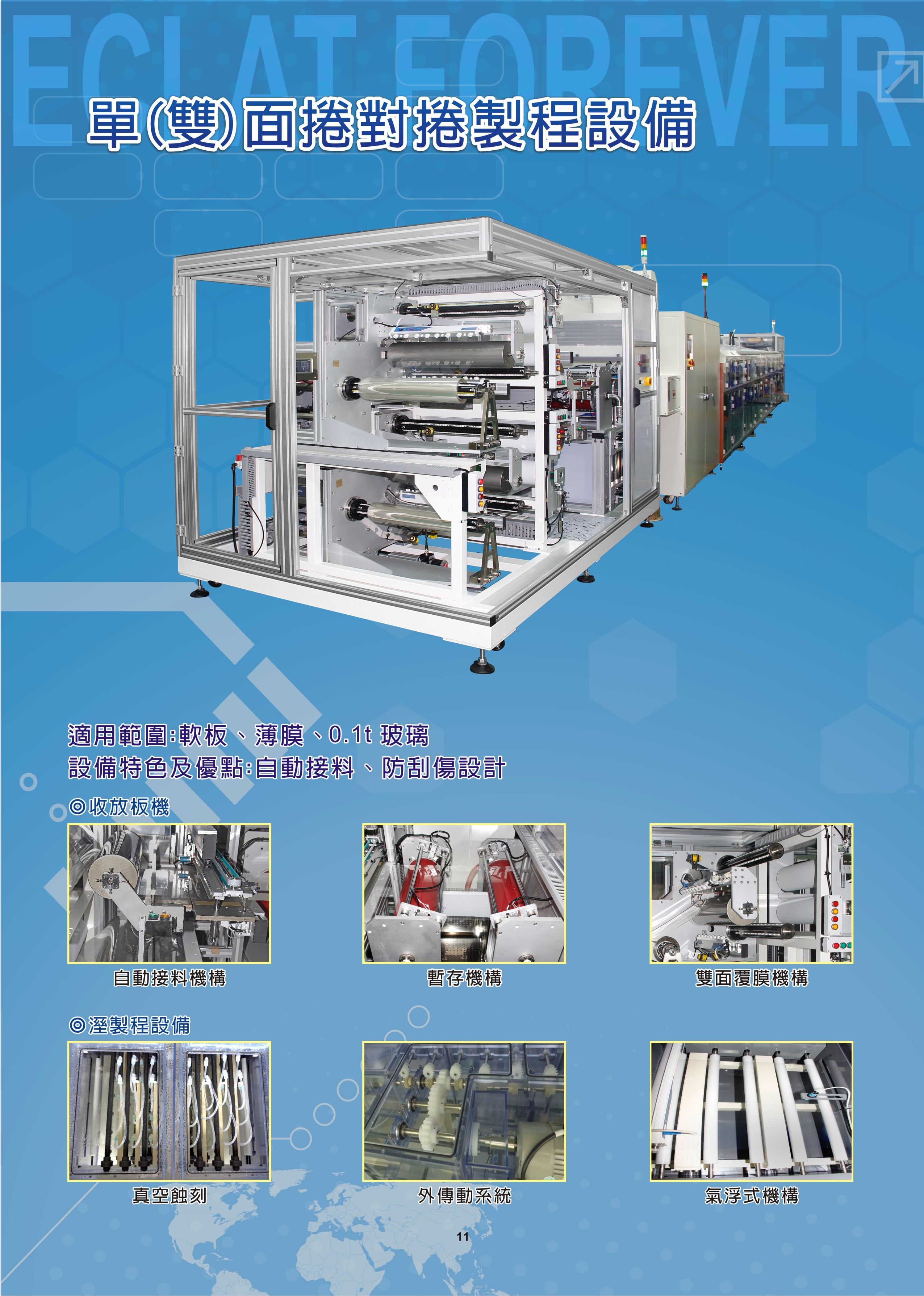 Core equipment covers critical processes such as developing, etching, cleaning, and film stripping, and can be custom-designed according to customer requirements to enhance panel yield and process stability. To date, Eclat Forever Machinery’s solutions have been successfully implemented by numerous domestic and international FPD manufacturers, continuously advancing equipment technologies toward greater automation, lower defect rates, and higher precision.