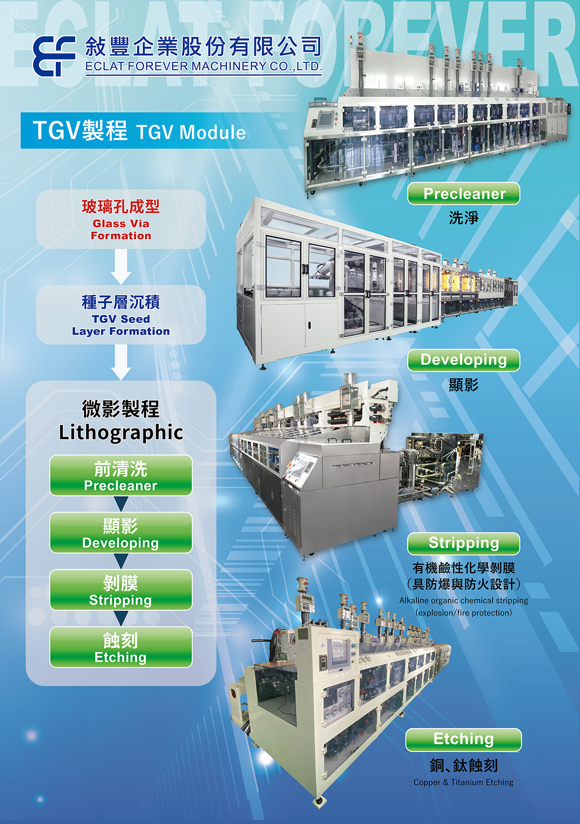 現在、当社は国内外の高階載板および先進封装分野をリードする多数のメーカーと協業関係を構築し、当社開発の複数のウェットプロセス装置を試作および量産製程へ導入いただいています。これらの取り組みはお客様より高い評価を得ています。今後も装置性能の高度化と知能化統合技術を継続的に深化させ、次世代高階封装製程装置における 中核技術パートナー となることを目指します。