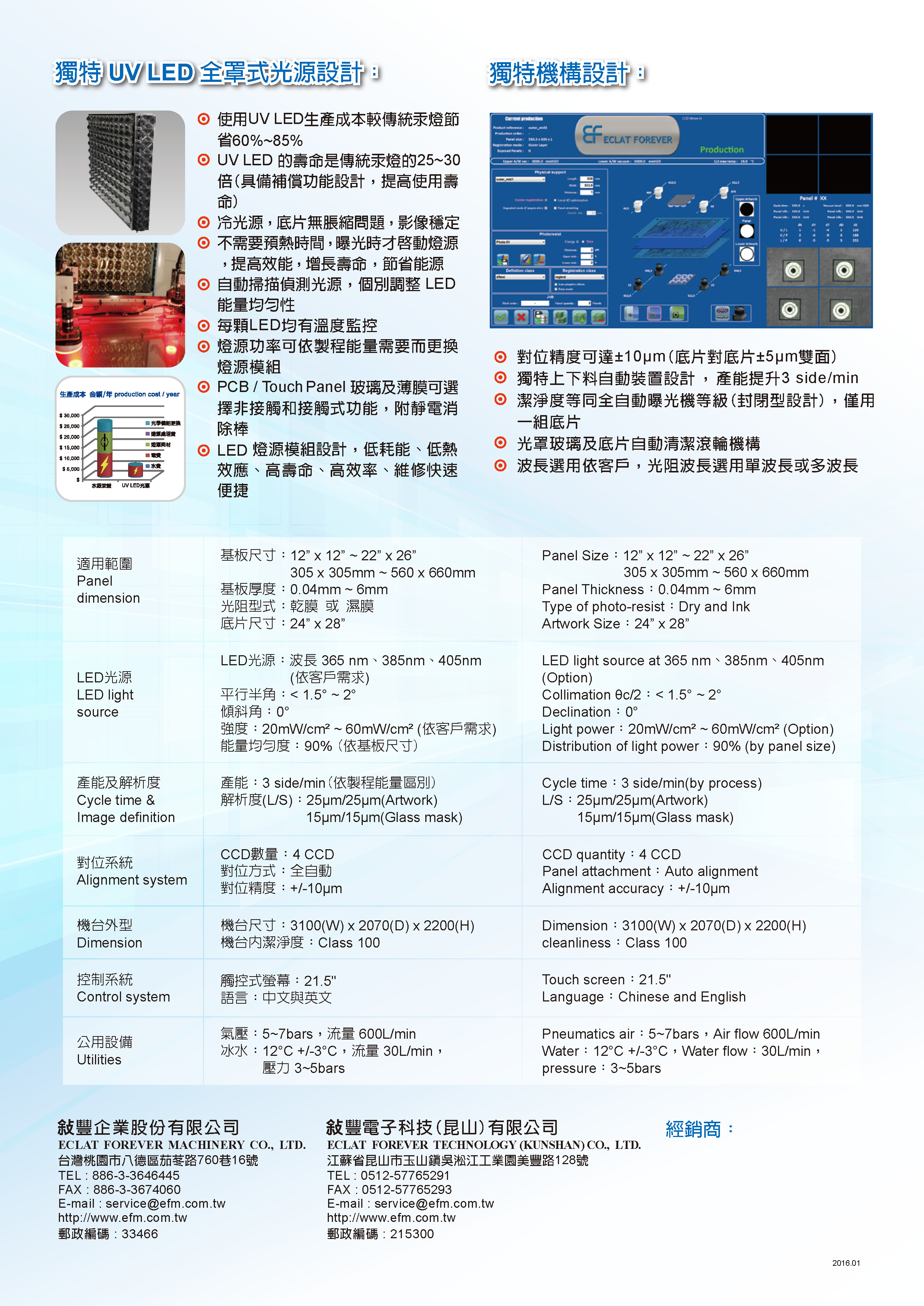 両面高精度 全自動 UV LED 露光装置 仕様説明